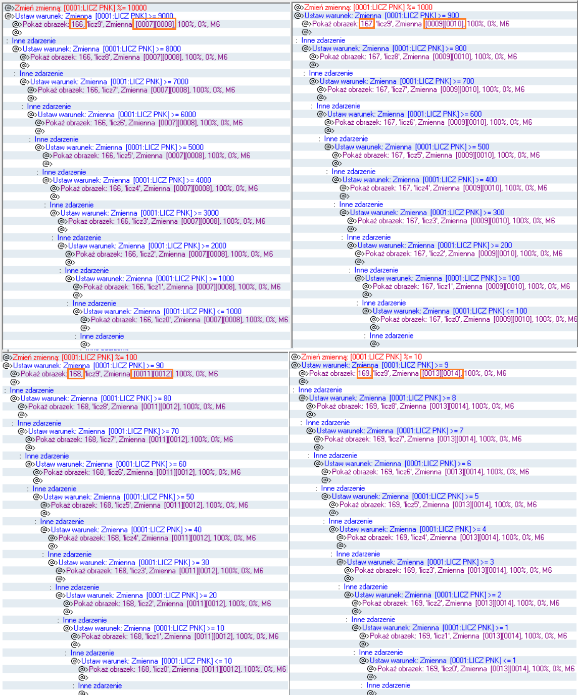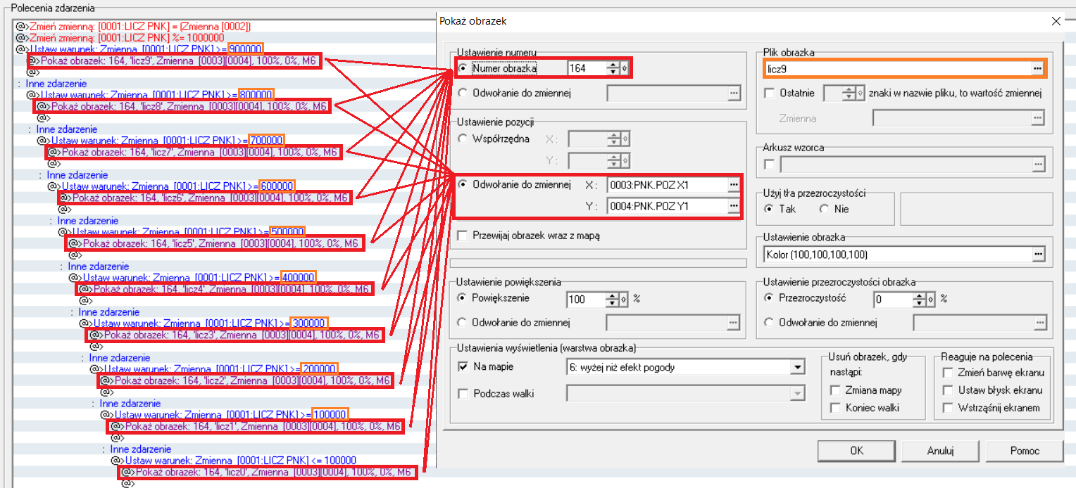 Do każdego z nich ustawiamy polecenie [POKAŻ OBRAZEK nr (przykładowo) 164] i w zależności od wartości warunku, ustawiamy