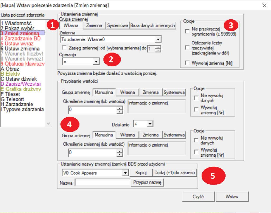 Tytuł: Wolf RPG Editor - Polecenie Zdarzenia: Zmień Zmienną