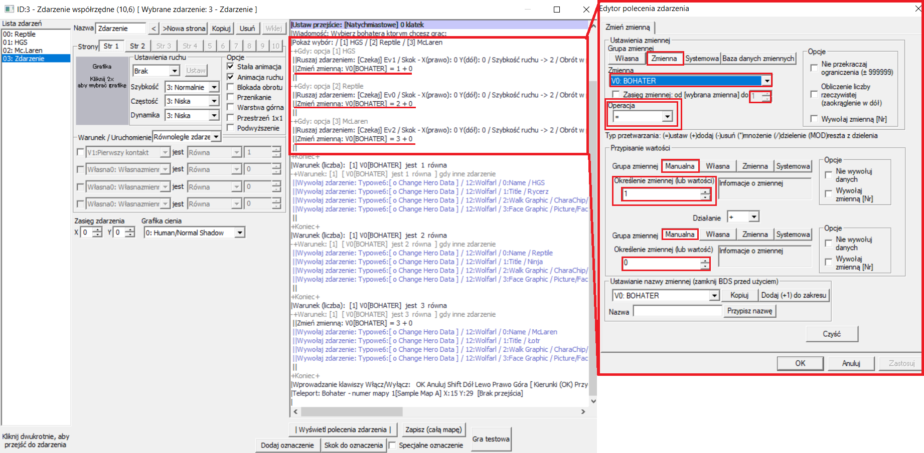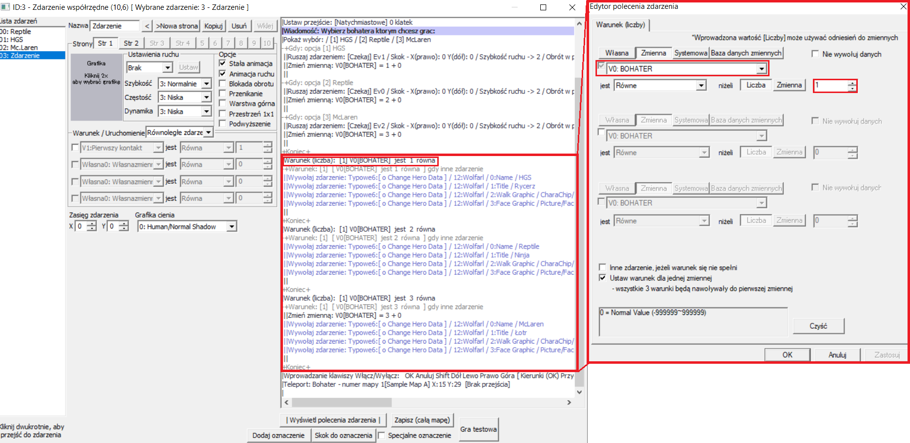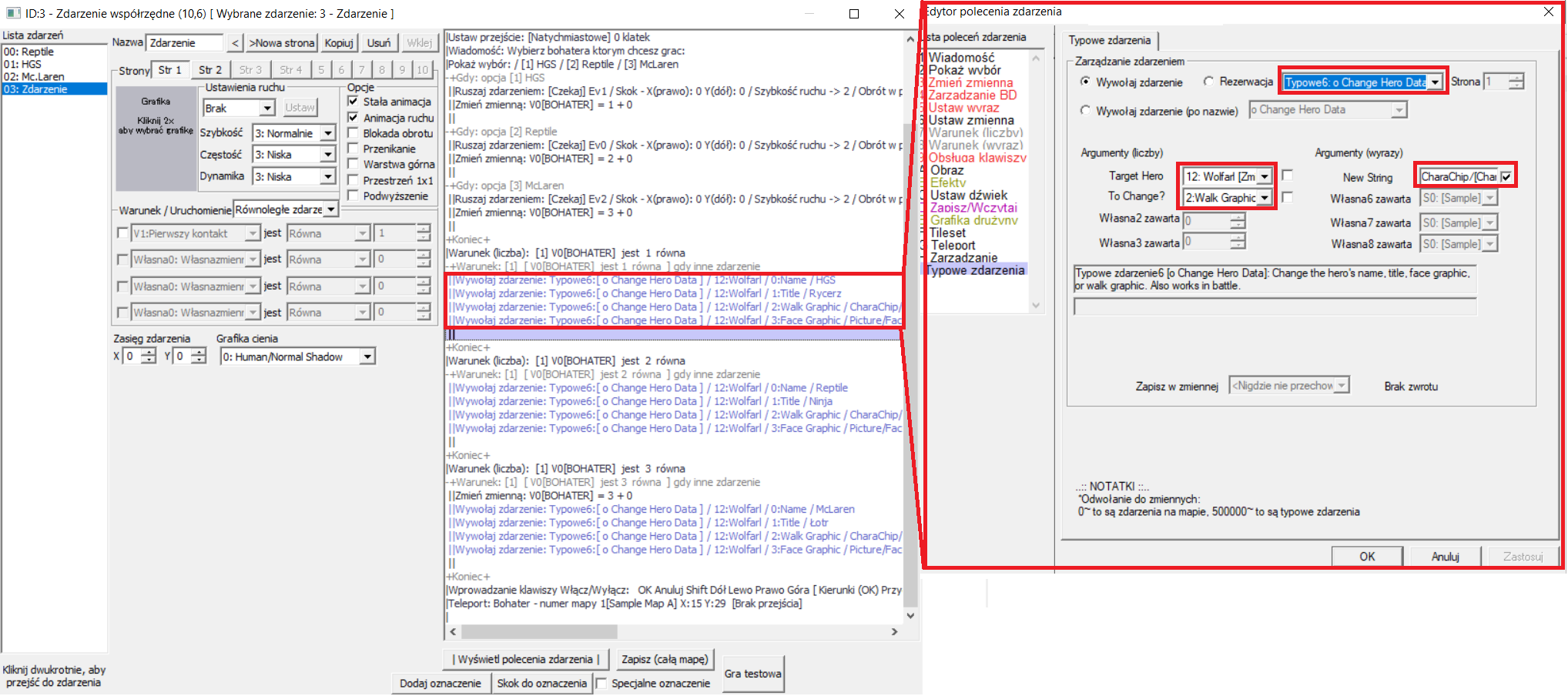 Zdarzeniówka nazywa się Wybór Bohatera i prezentuje funkcję w jakim sposób możemy zmienić głównego bohatera,