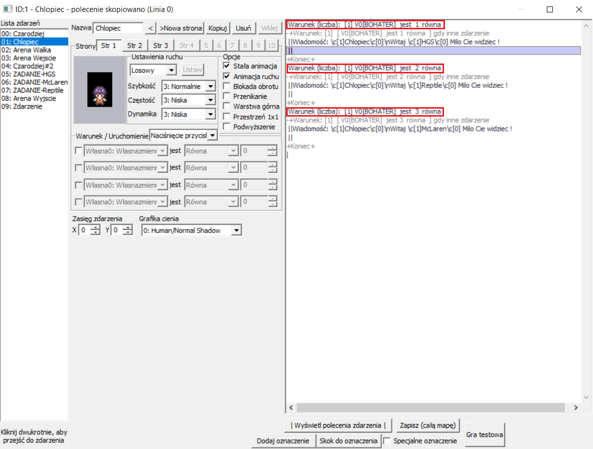 Zmienna:Bohater == 0, tak jak pisałem powyżej jest przypisana do konkretnego bohatera