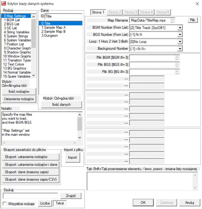WRPG posiada bazy eventów i bazy danych systemu, które pomogą Ci z tworzenia gry. Dzięki bazom danych możesz tworzyć postacie, umiejętności, magię, potwory i nie tylko.
