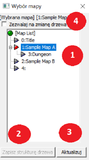 - Kliknij nazwę mapy: przełącza edytowaną mapę w oknie głównym