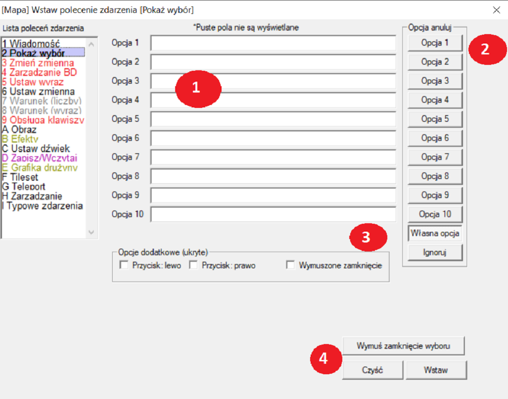 Tytuł: Wolf RPG Editor - Polecenie Zdarzenia: Pokaż Wybór