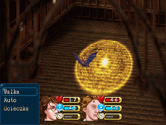 przeciwników podczas walki, które (nawet jak na rm2k3) są strasznie pixelkowate i są mieszanką różnych stylów (a powinny być z jednego konkretnego). Grafikę można